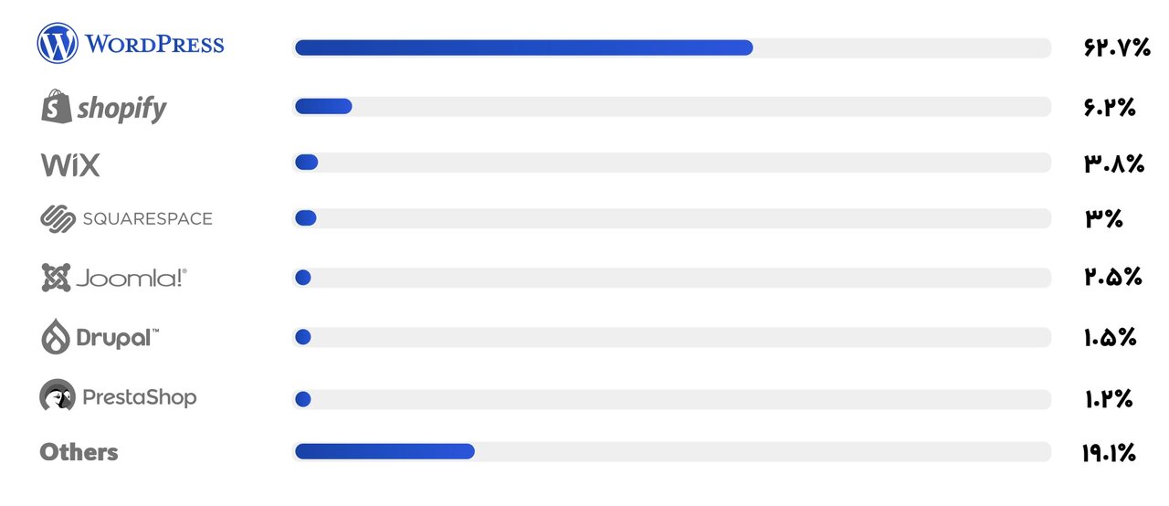 وردپرس با سهم ۶۲.۷ درصدی، بیشترین حجم بازار سیستمهای مدیریت محتوا را به خود اختصاص داده است.