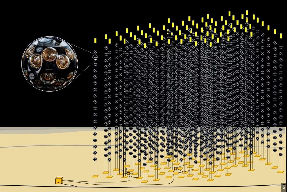 پروژه KM3NeT شامل نصب صدها گوی شیشهای روی کابلهای عمودی در اعماق تاریک دریاست که بهعنوان آشکارساز نوترینو عمل میکنند. به محققان اعلام کردهاند تاکنون ۵۷ کابل در این پروژه نصب شده و برای افزودن صدها کابل دیگر برنامهریزی شده است.