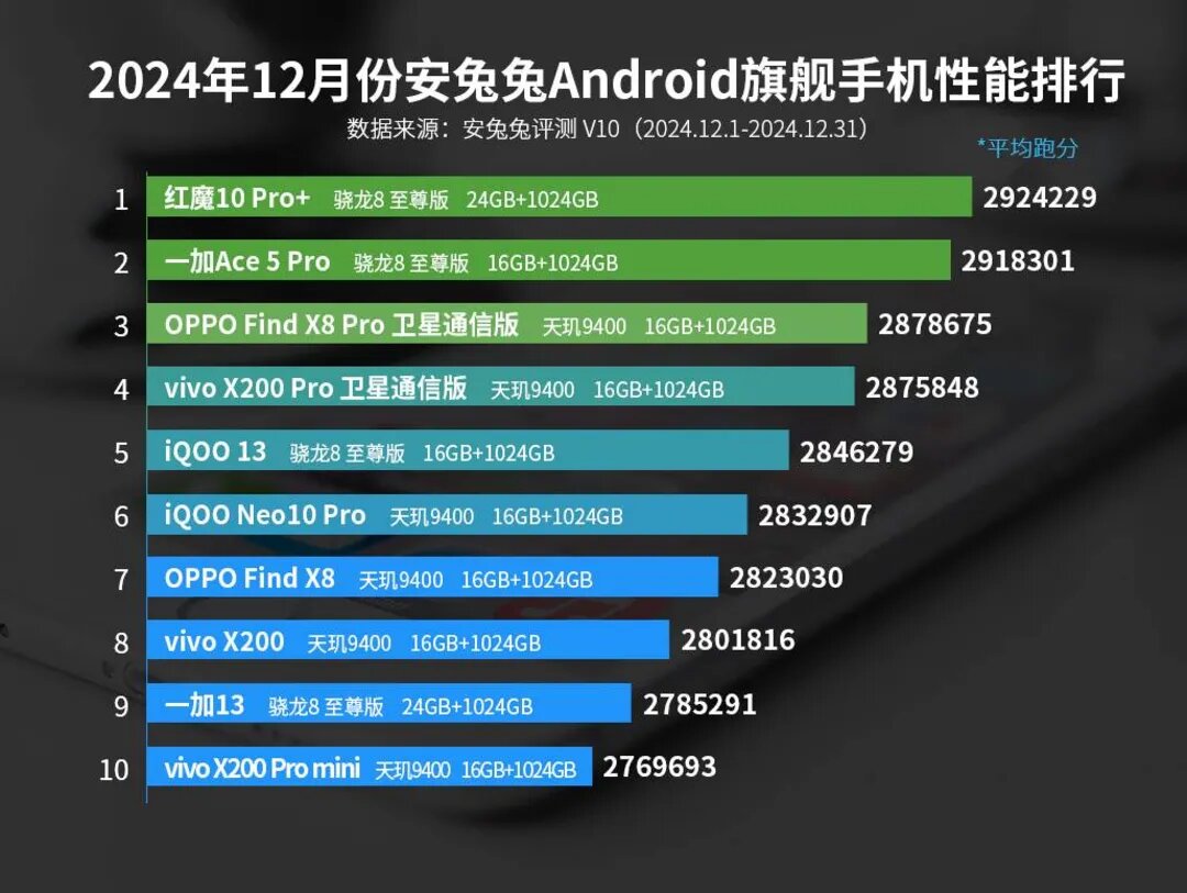گوشی زد تی ای مدل نوبیا ردمجیک ۱۰ پرو پلاس با تراشهی قدرتمند اسنپدراگون ۸ الیت موفق شد صدرنشین لیست دسامبر ۲۰۲۴ (آذر و دی ۱۴۰۳) آنتوتو شود. این گوشی گیمینگ با امتیاز ۲,۹۲۴,۲۲۹ از ایسوس ROG Phone ۹ پرو که ماه گذشته در صدر بود پیشی گرفت. جالب اینجاکه گوشی ایسوس با وجود امتیاز ۲,۹۳۲,۱۲۴ در نوامبر (آبان و آذر ۱۴۰۳) در لیست دسامبر حضور ندارد.