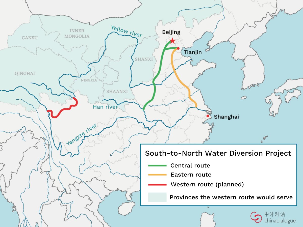 باوجودی که ۲۰ درصد جمعیت جهان در چین زندگی می‌کنند، اما این کشور تنها یک‌ششم از منابع آبی دنیا را در اختیار دارد؛ مناطق شمالی چین، خشک و درعین‌حال صنعتی و کشاورزی است و بخش جنوبی درگیر سیلاب‌هاست و از همین رو مفهوم توزیع مجدد آب برای اولین بار توسط مائو زدونگ در سال ۱۹۵۲ ارائه شد.