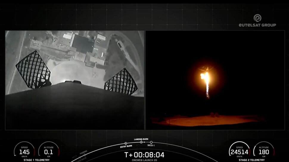 اولین مرحله موشک فالکون ۹ کمی بیش از هشت دقیقه پس از بلند شدن به زمین بازگشت. پیشران آن، که با نام B 1086 شناخته میشود، در اقیانوس اطلس بر روی سکوی شناور «فقط دستورالعملها را بخوان» (Just Read the Instructions) اسپیسایکس در فاصله حدودی ۲۵۰ مایلی (۴۰۰ کیلومتر) از سواحل فلوریدا فرود آمد. با این حال، آن پیشران اندکی پس از فرود از دست رفت.
